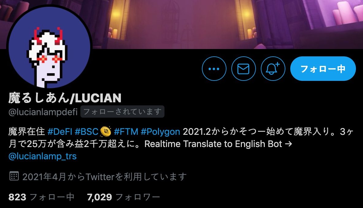 あ、そうそう。Polygon魔界と言えば魔るしあん(@lucianlampdefi)さんがめちゃくちゃ早く有益な情報を流してくれるのでオススメです。