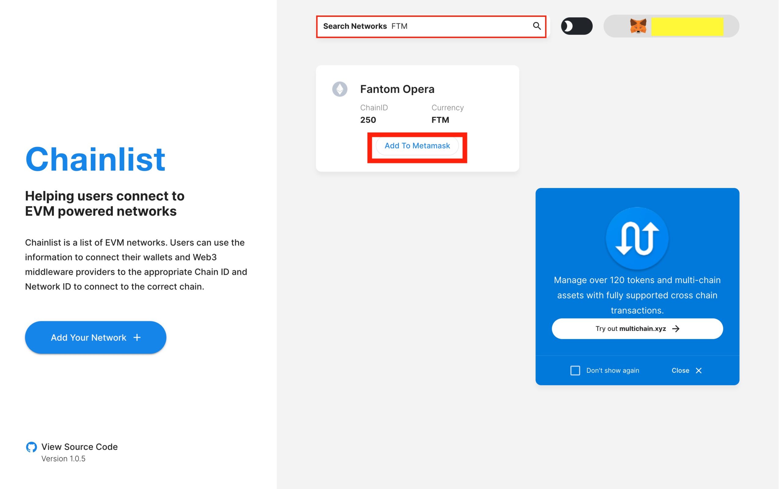まずFTMを用意してイーサリアムチェーンでMetamaskに送金してください。
