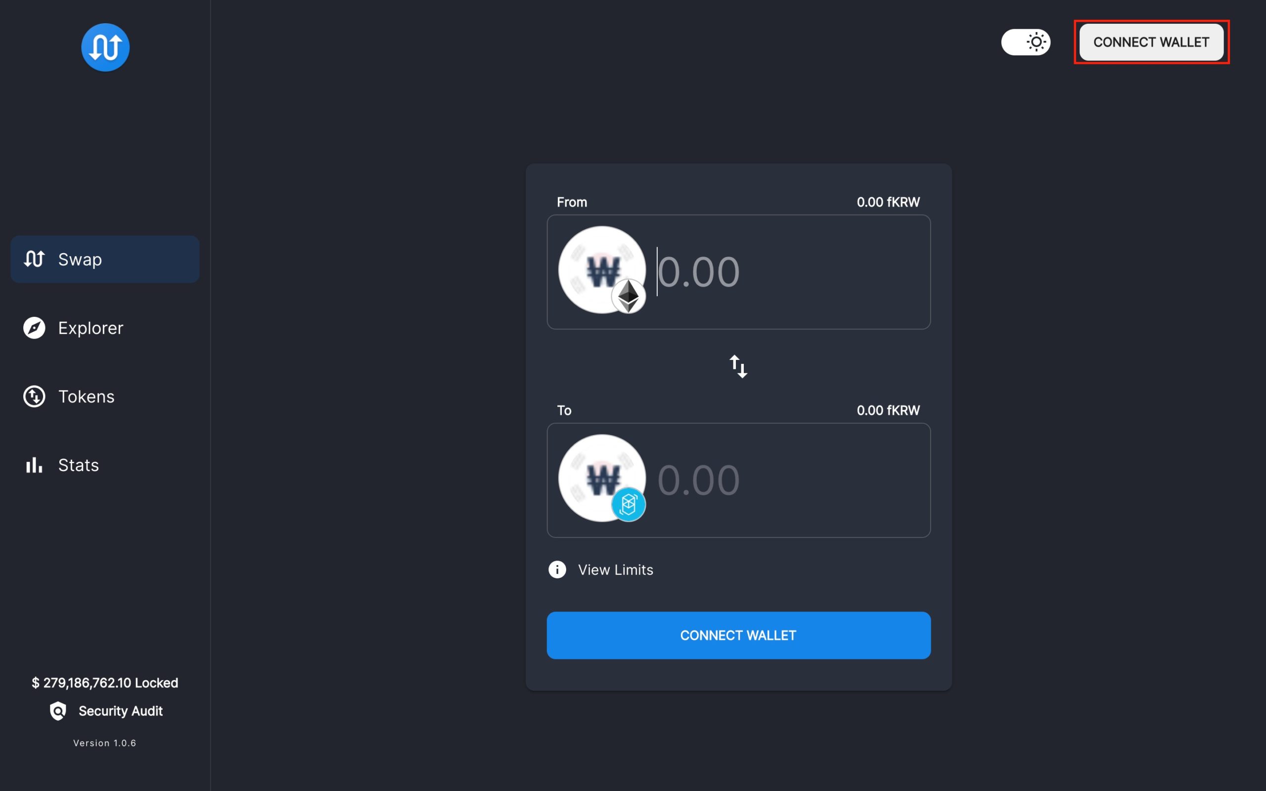 接続が完了したら左の「Trade」をクリックし、上のタブで「Swap」を選択します。