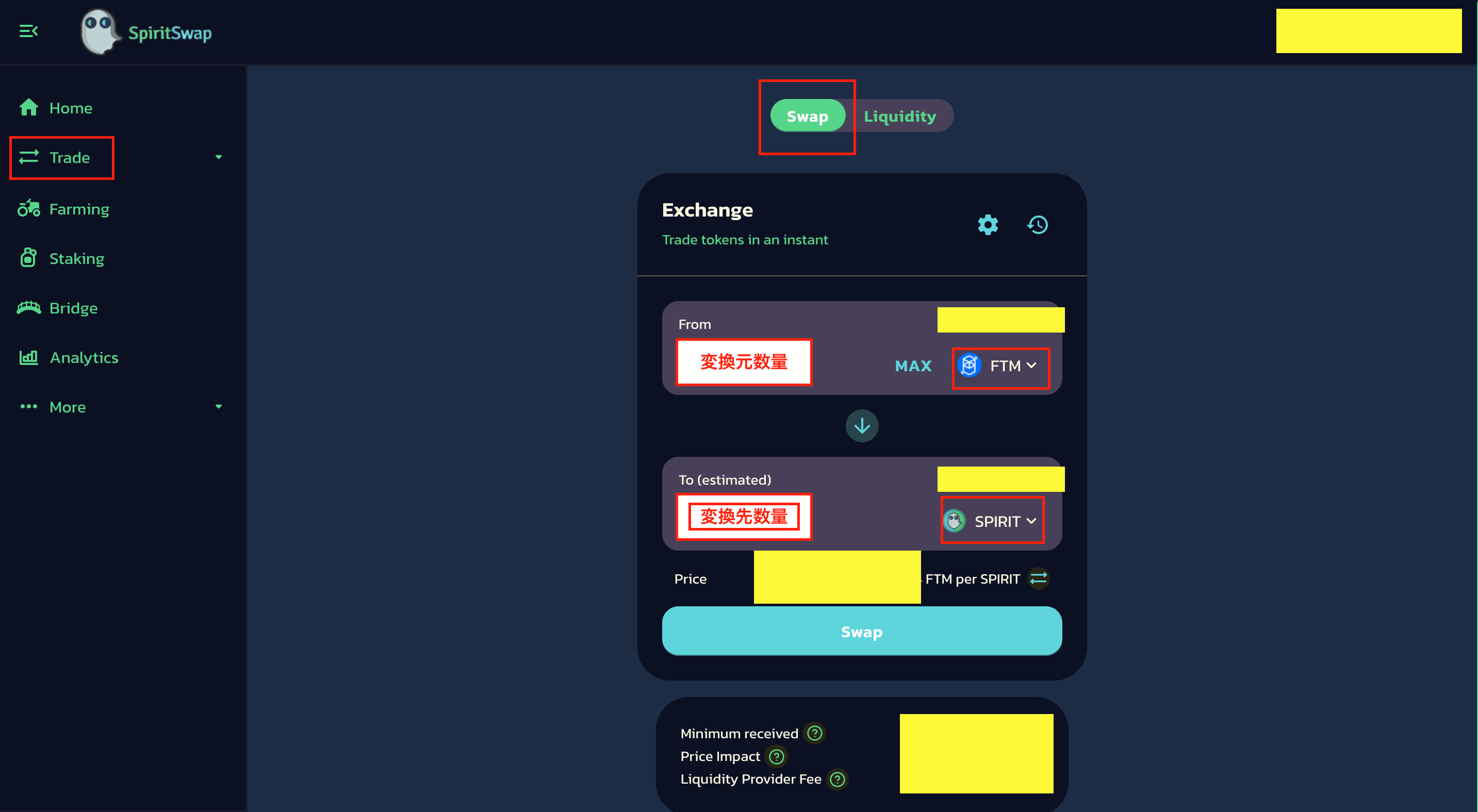 MetamaskにFTM(FTM)が用意できたので次は実際にメインAMMであるSpiritSwapでスワップしてみます。
