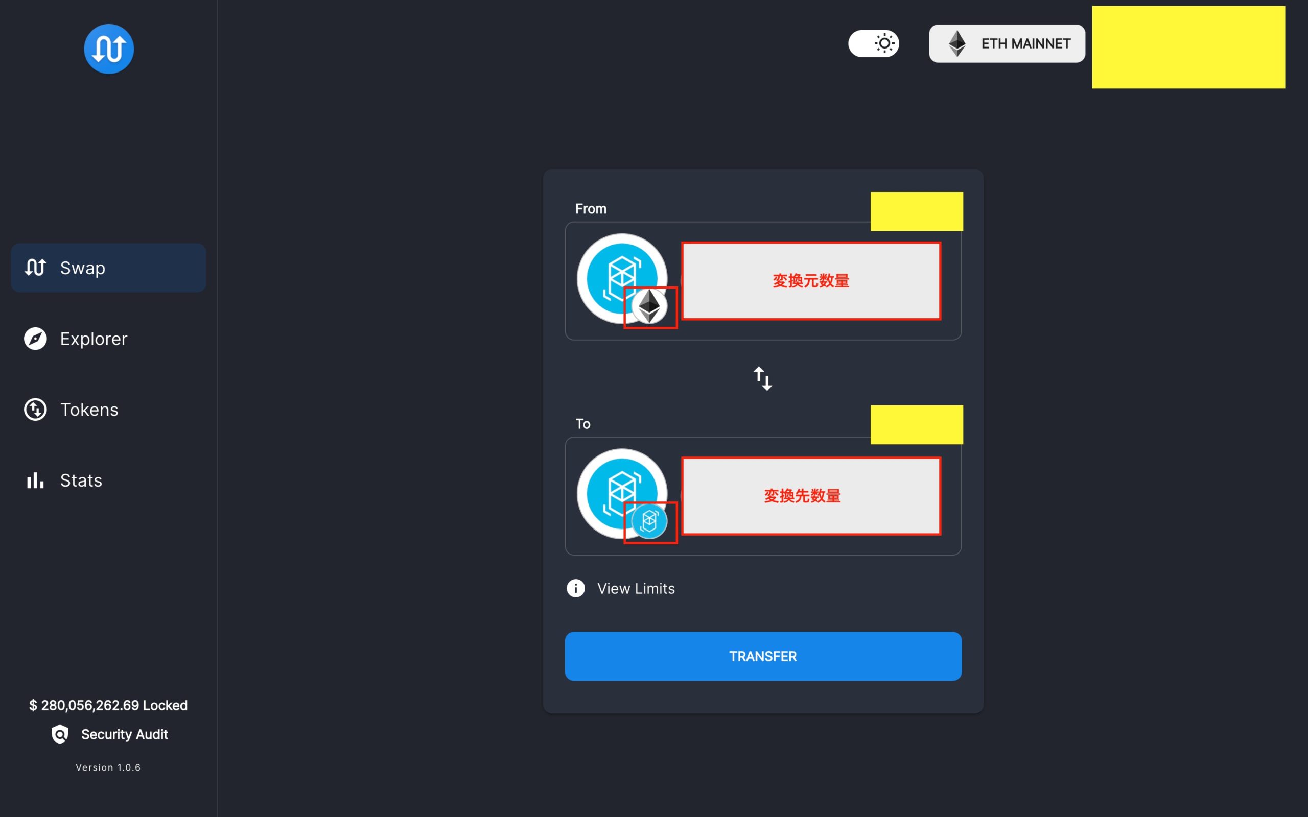 スワップ内容の詳細が出てきます。念の為もう一度確認してから「Confirm Swap」をクリックしてください。