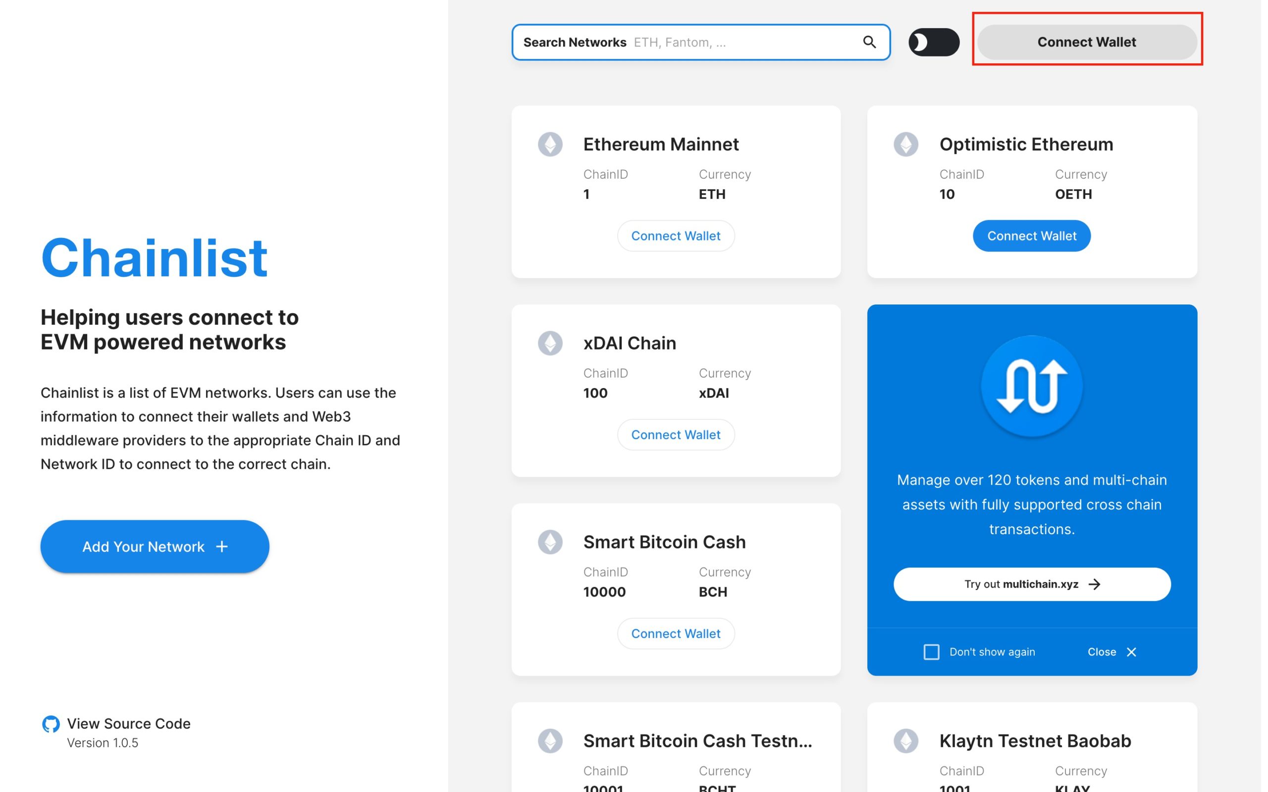 Metamaskに残高が反映されたらMultichainにアクセスします。