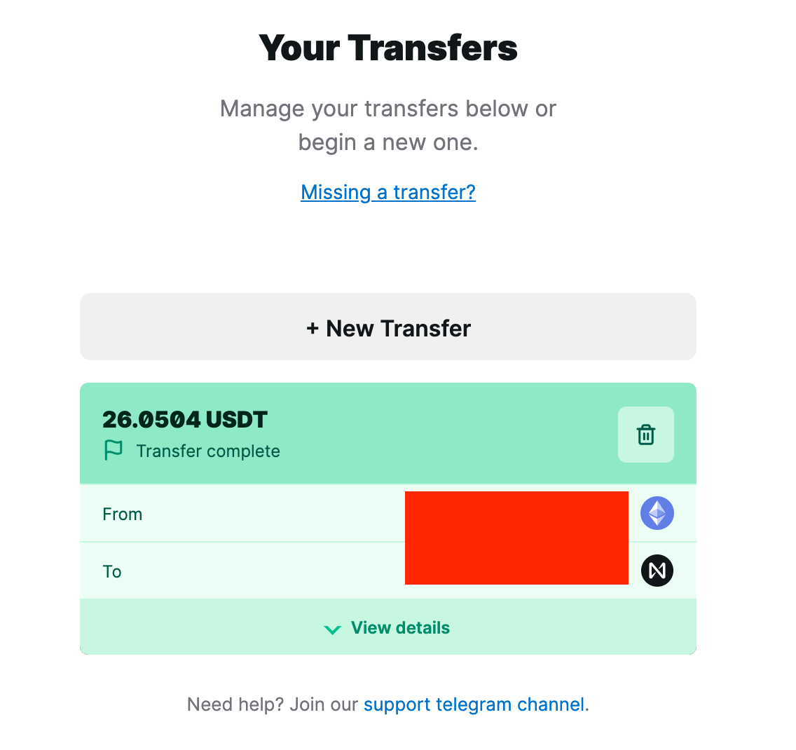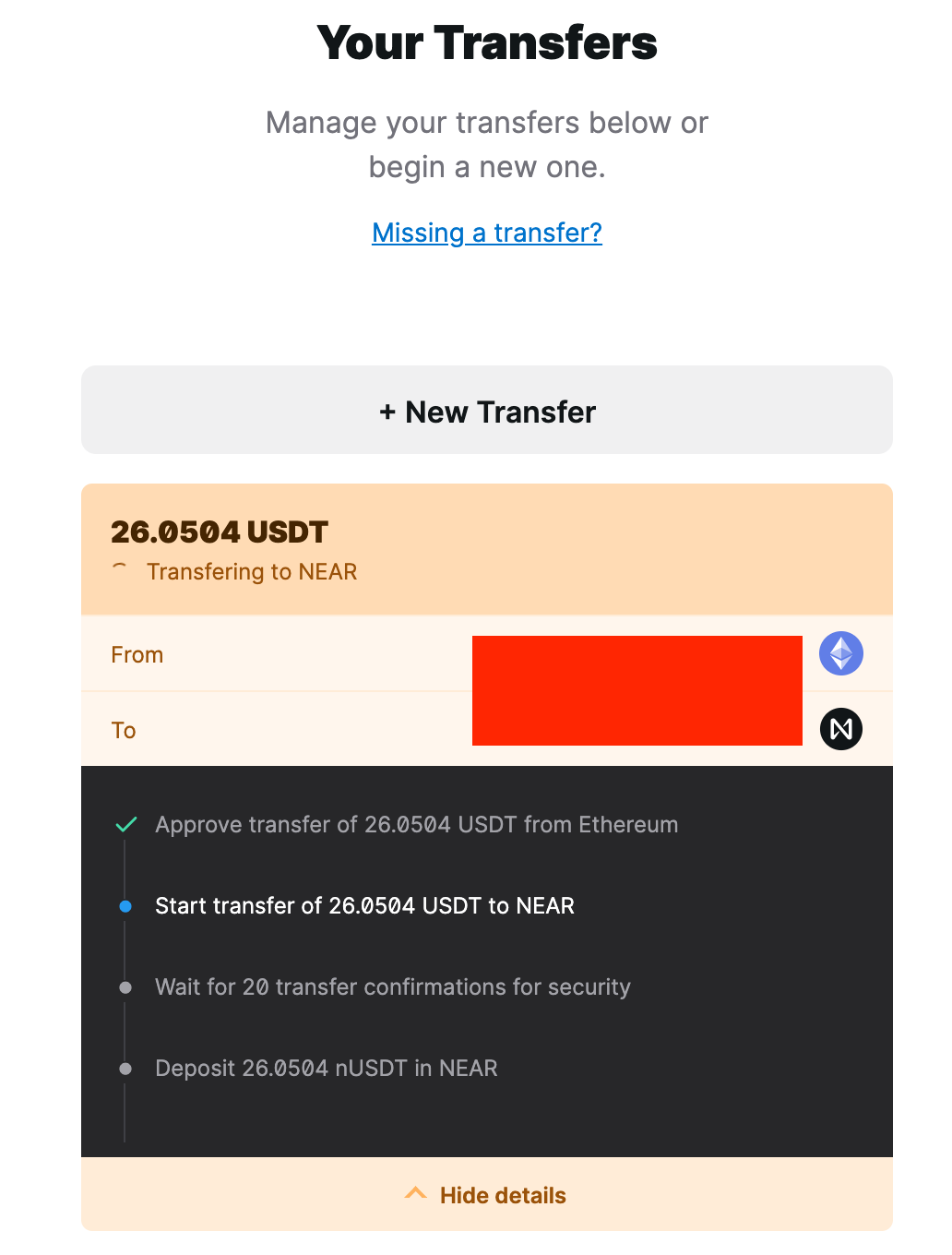 今回はERCのUSDTをNEAR上にブリッジします。また、NEAR上のUSDTはnUSDTという名称です。