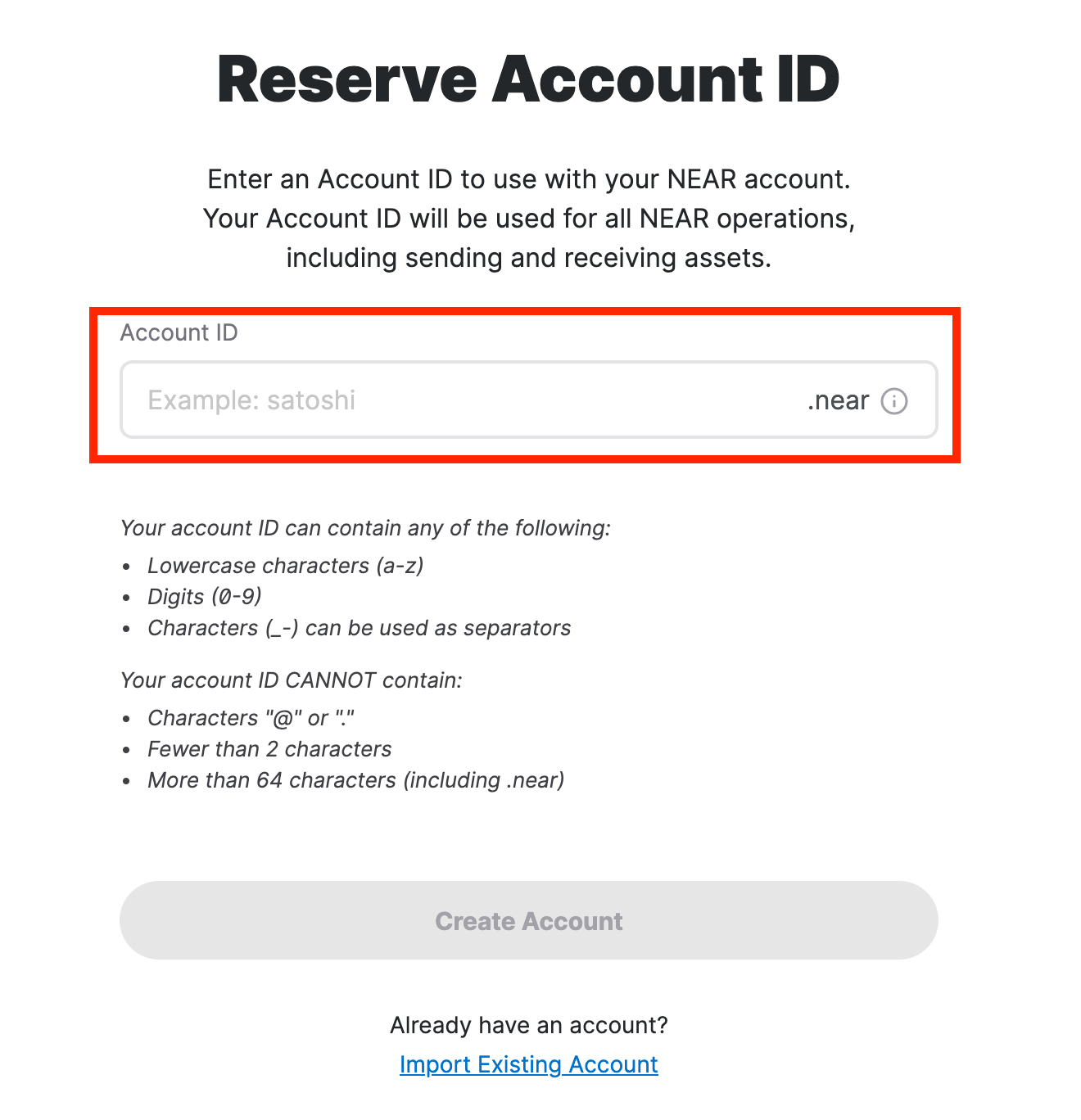 NEAR上でSWAPする際はこのアカウントIDがベースとなるため、てきとーに選ぶよりはこだわり持って決めたほうが良いですよ。