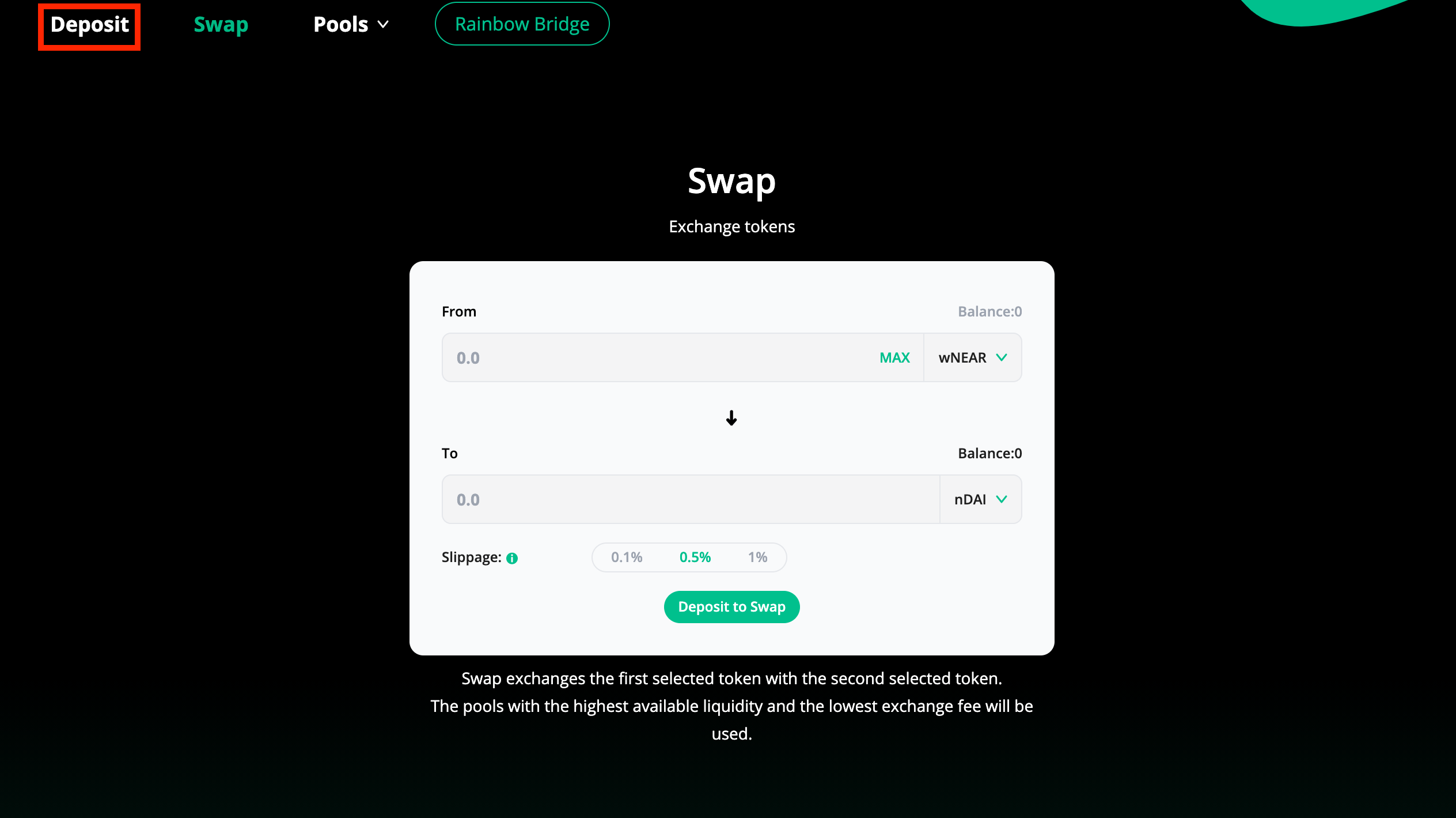 NEAR上で展開しているDEXはまだ数が少ないため、Ref.Financeを使いましょう。