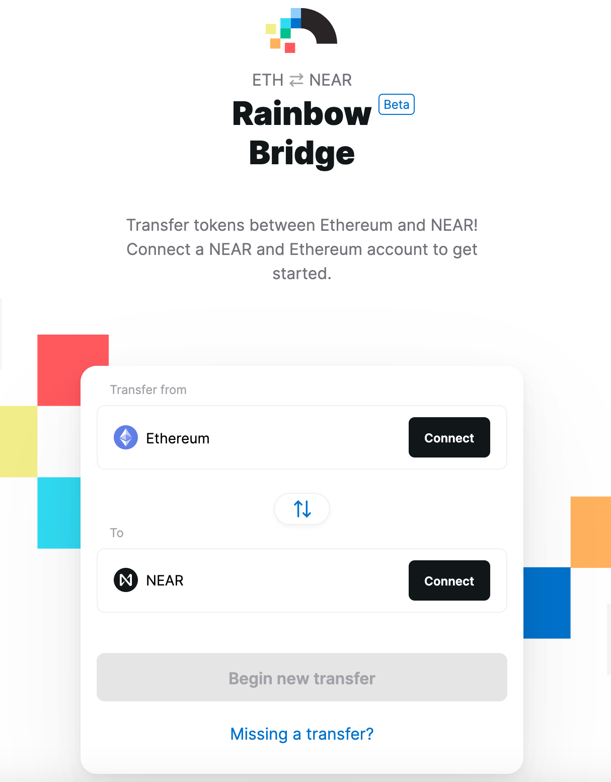 レインボーブリッジというツールを使えばERCの資金をNEAR上に瞬時にブリッジすることができます。