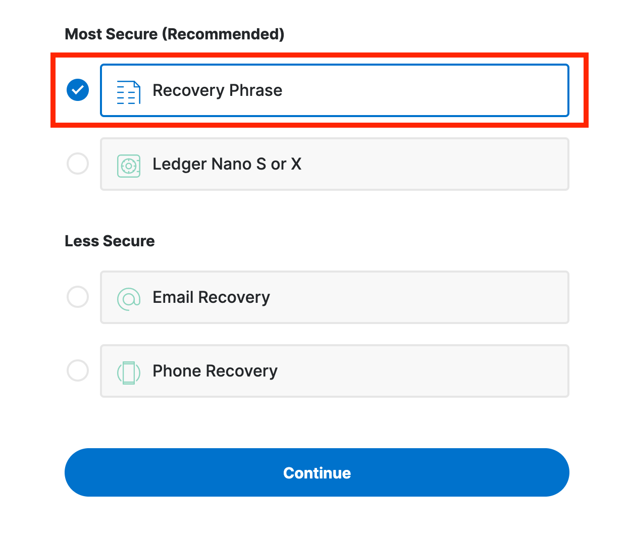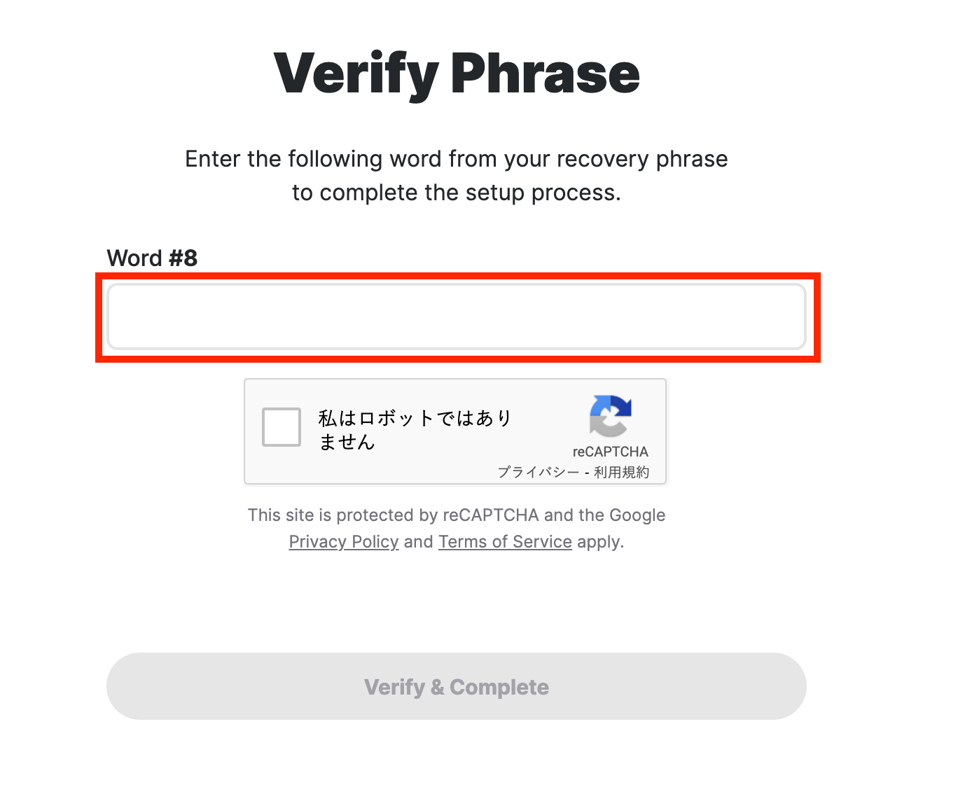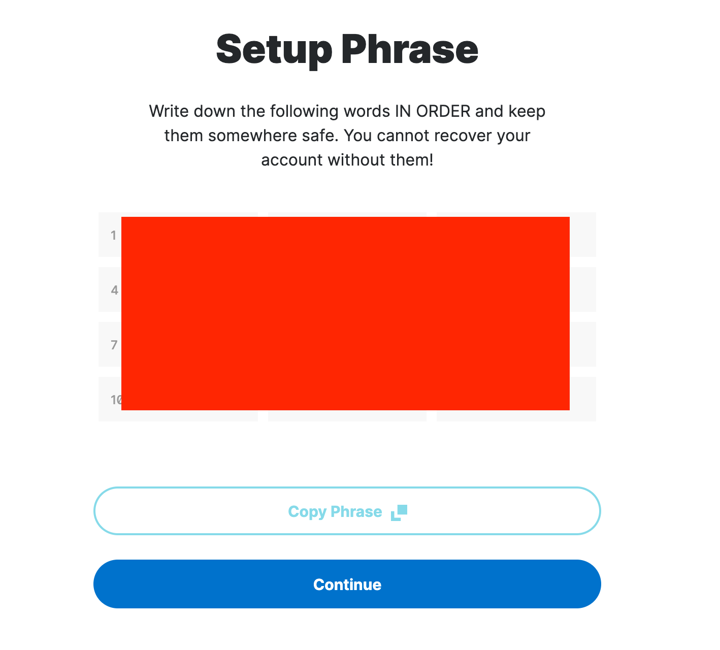 このRecovery Phraseは必ず無くさないように保存しておきましょう。