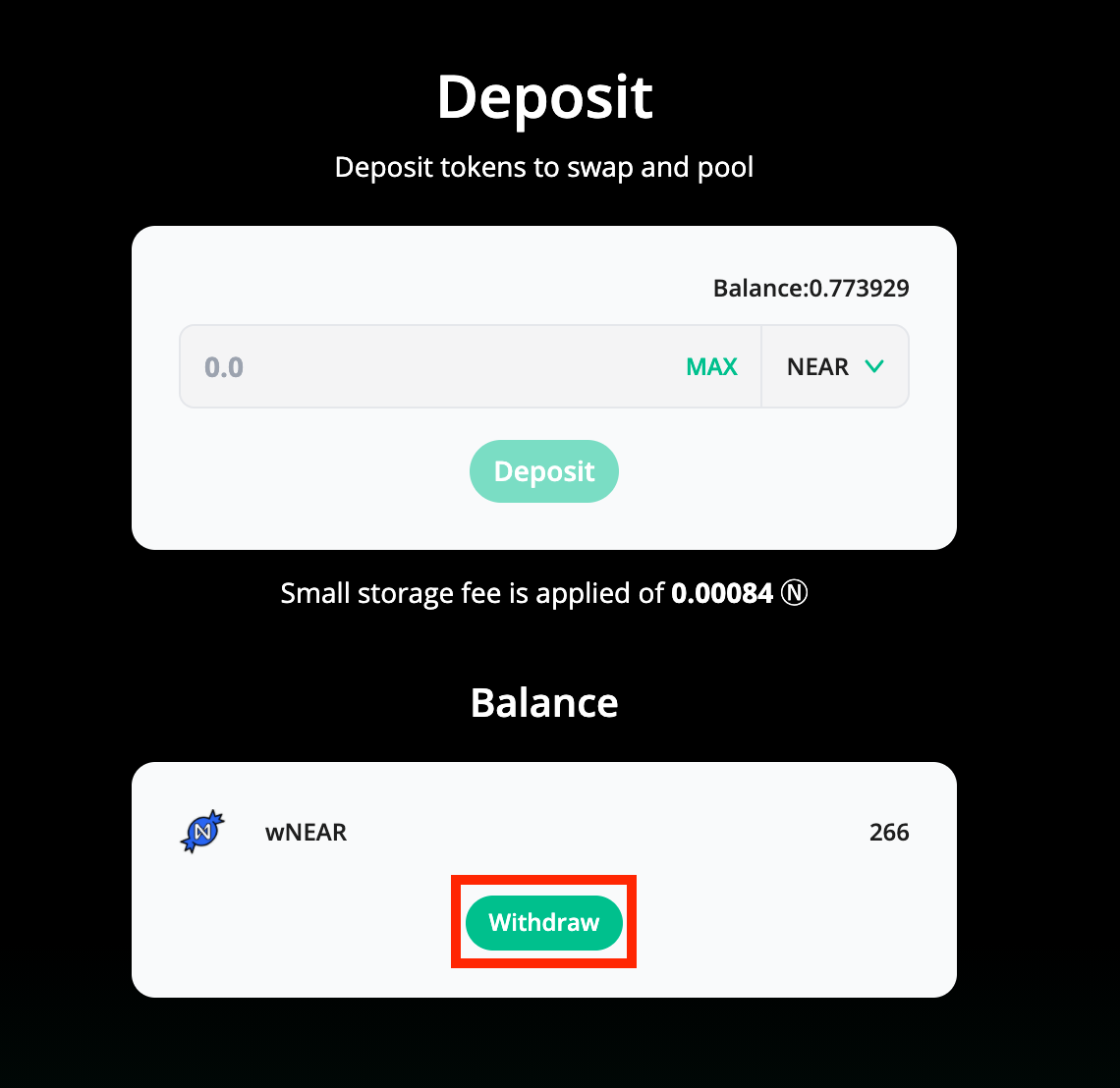 出金する際(NEAR WALLETに戻す)は、「Withdraw」から可能です。