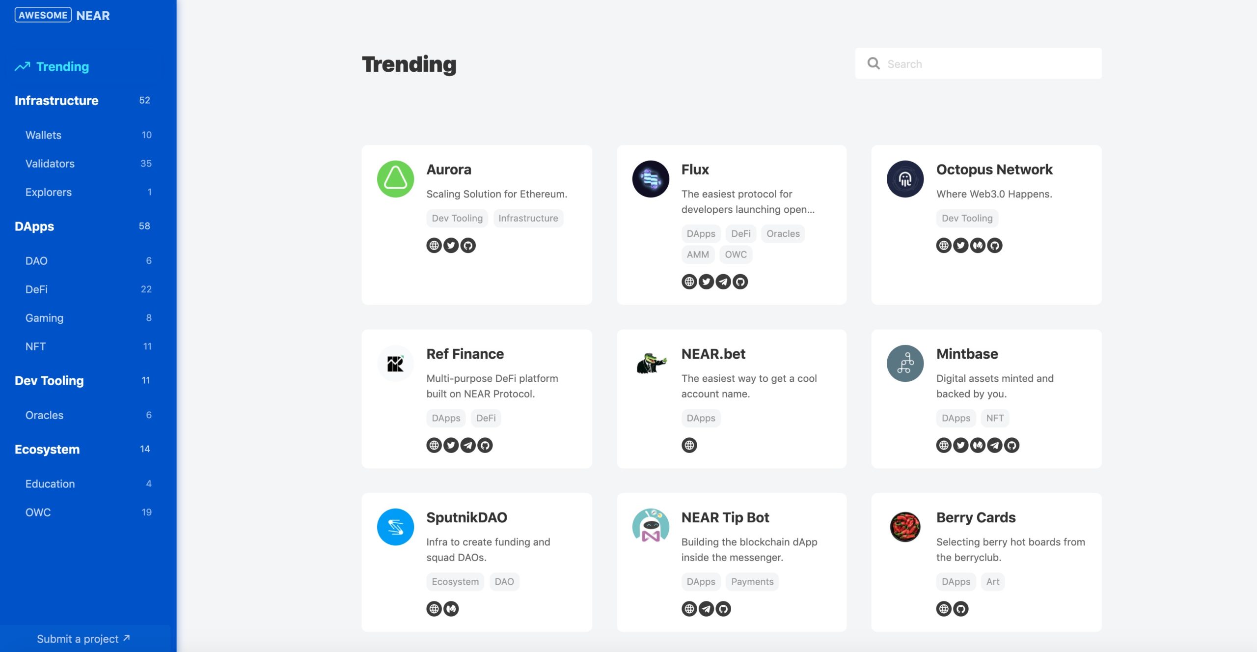 新しいパブリックチェーンのプロジェクトは対応しているサービスを探すのが難しいため、このように一覧となって整理されているのは探す手間が省けるのでありがたいです。