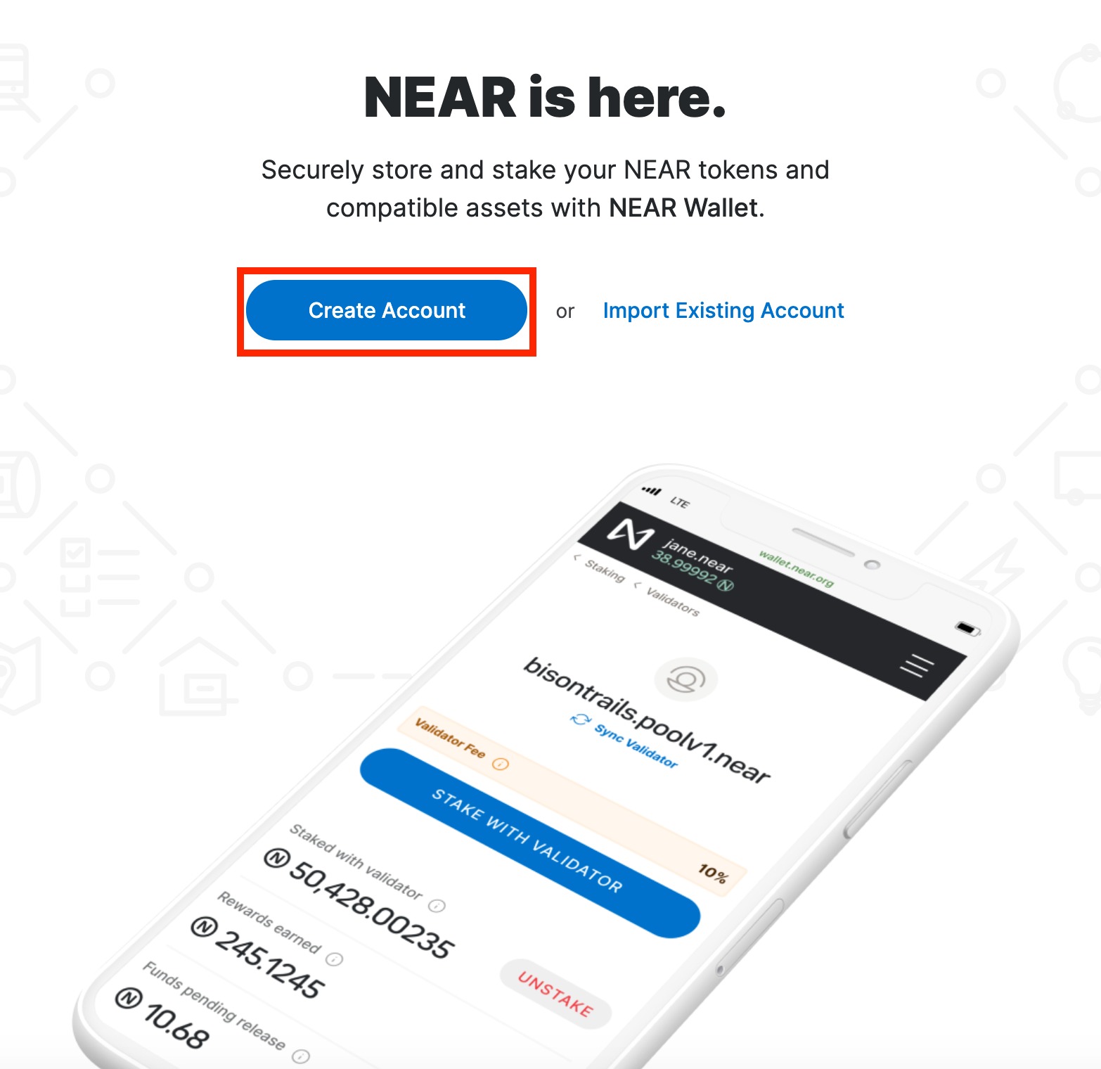 まず、Near Walletにアクセス後、Create Accountをクリックしましょう。