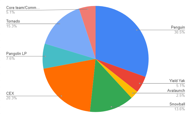 そのため、トークンの配分を見てもPenguinFinanceへの割合が多いことが分かります。